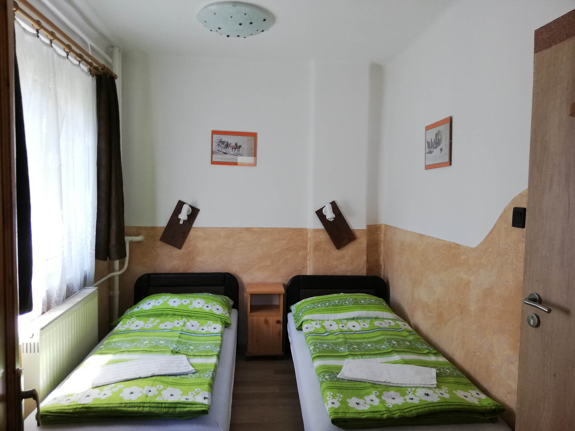 Kettő ill. négyágyas szobáink mindegyike zuhanyzós, fürdőszobával felszerelt. A szobákhoz színes TV és hűtő is tartozik.